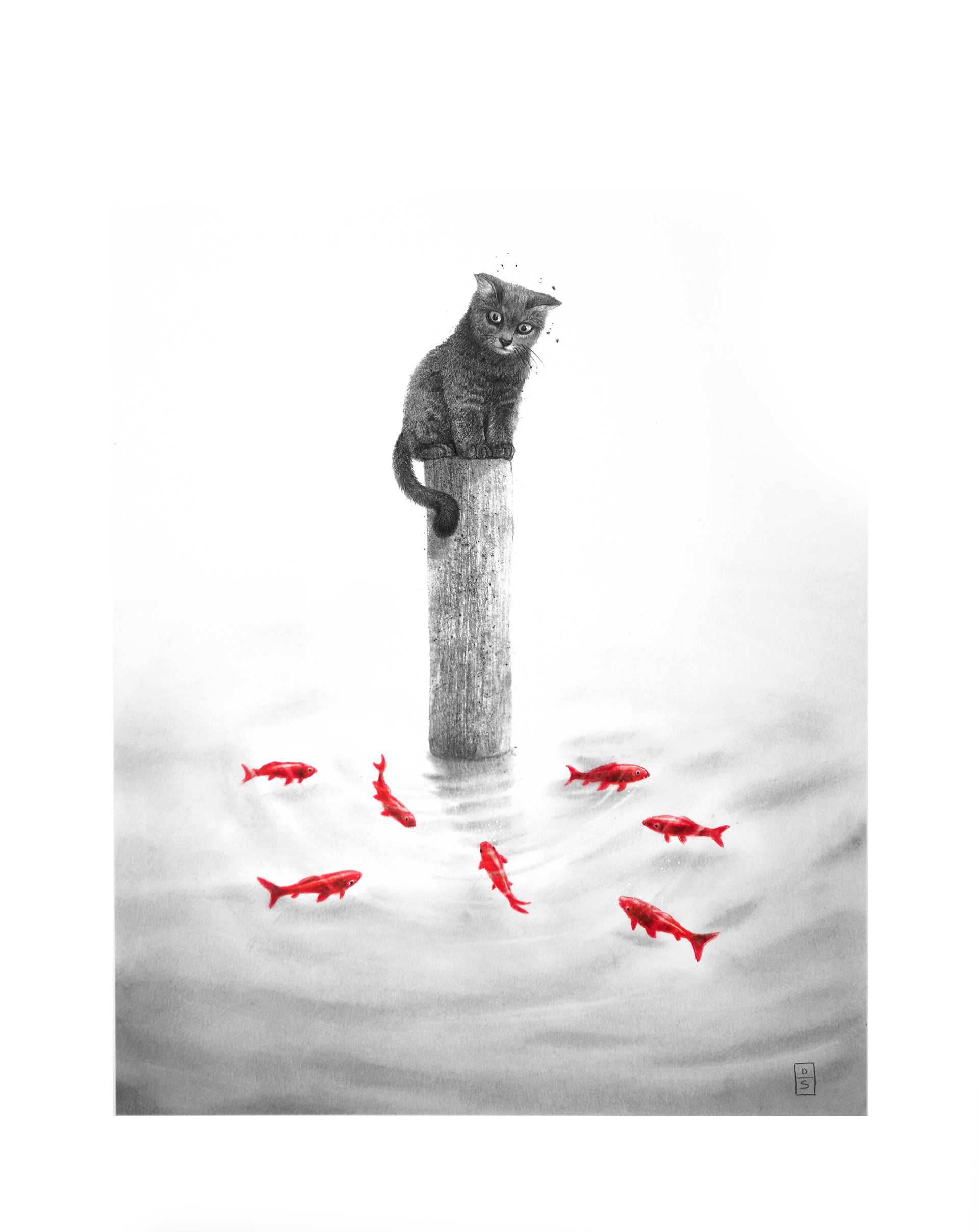 Le chat et les poissons rouges